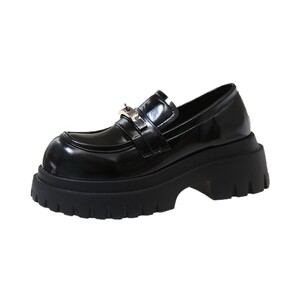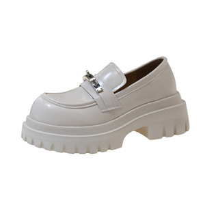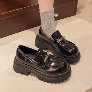 2025春の新作ネットセレブ英国風小柄厚底革靴メタルバックルスリッポンローファー