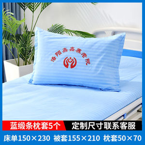 ブルーのサテンストリップポリエステル枕カバー5枚