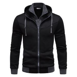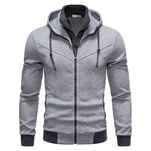2025 クロスボーダーヨーロッパとアメリカのメンズスウェットシャツファッションカジュアルアウトドア偽ツーピーススリムカラーブロックフード付きスポーツカーディガン