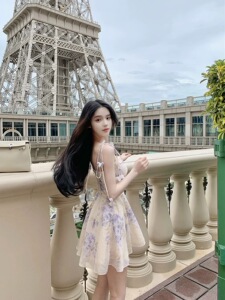 ホットドッグ ホットドッグはとてもスパイシーな白い月の花柄のユニークでシックで絶妙な気質の女性用花柄ストラップサスペンダースカート