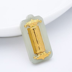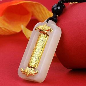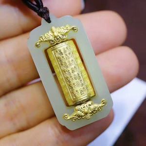 新しい金象嵌翡翠転送チューブと田翡翠百福ペンダント誕生日ギフトペンダント