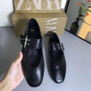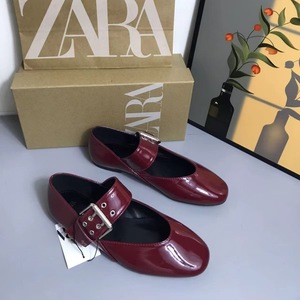 ZA メーカー 2024 夏の貿易バーガンディ パテントレザー浅い口バックルバレエ スタイル フラット シューズ リベット装飾ストラップ