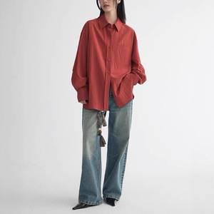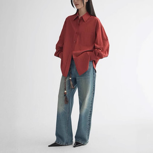 HAVERICE レストランバーンレッドシャツ春夏ドレープテクスチャルーズ痩身美白万能シャツトップ
