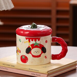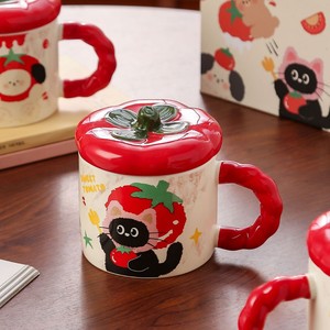 可爱番茄马克杯带盖创意伴手礼女生水杯高颜值陶瓷杯早餐牛奶杯子