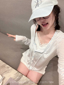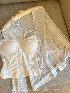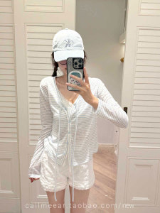 CallmeEar//【イミテーションテンセルストライプカーディガン薄手ストライプVネックカーディガンジャケットレディース夏日焼け止めトップス