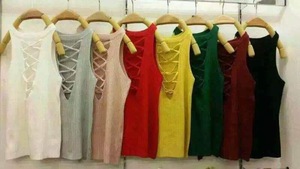 ノースリーブトップ女性の夏のアウターショートスリム多用途セクシーな学生バックレス中空ホルターネックニットキャミソール