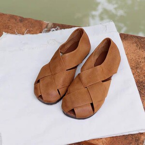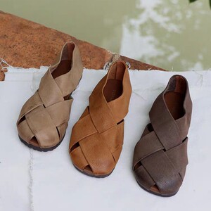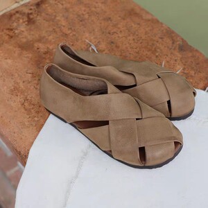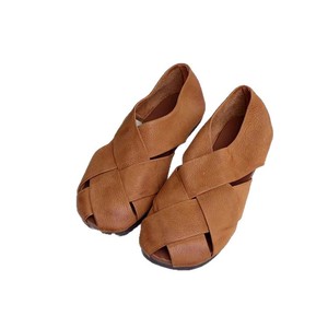 レトロ 6 月マット牛革日本文学手作りクロス織りローファー森ソフトソール中空サンダル女性用
