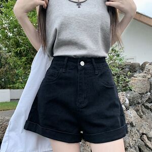 女性のための白いデニムショートパンツ 2025 新しいハイウエストスリム A ライン小人カールホットガールホットパンツ夏薄いスタイル