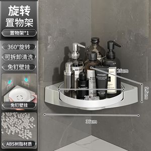 バスルーム収納ラック回転トレイ三角形壁掛けパンチフリーバスルーム壁コーナーシャワージェル収納ラック