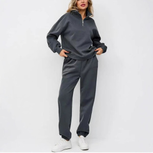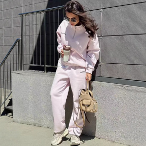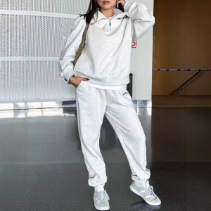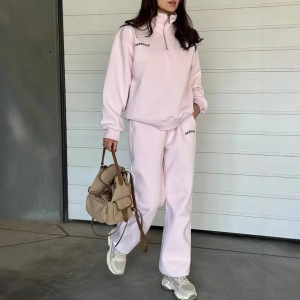INS ホット販売クロスボーダーニットカジュアル多用途無地スーツ長袖ジッパースウェットシャツとズボンスポーツスーツ 2 ピース