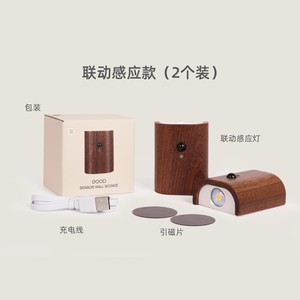 实木纹联动人体感应led灯充电磁吸壁灯楼道家用床头卧室USB小夜灯
