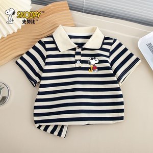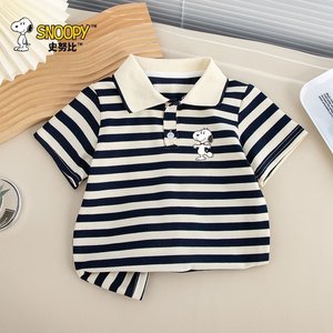 子供の夏の新しいラペル半袖ポロシャツ薄いカジュアル漫画襟ストライププリントトップ