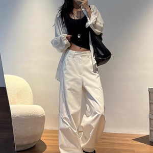 ホワイトパンツレディース2025春夏新作スリムストレートワイドレッグパンツ日本製ゆったりカジュアルハイウエストオーバーオール