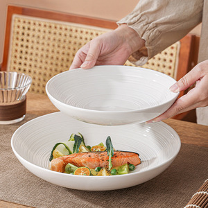 陶瓷盘子汉斯圆盘家用菜盘餐盘2025新款高级感日式白色沙拉盘深盘