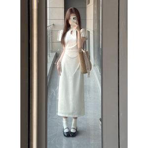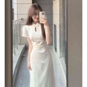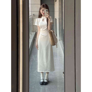 150 ショート新中国風改良チャイナドレス夏の優しい気質ガールウエストロングスカート