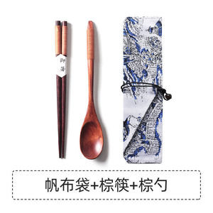 茶色のラインの箸+スプーン+キャンバスバッグ
