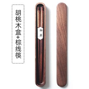 茶色のラインの箸+黒ウォールナットの箸箱