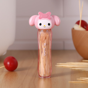 新しい可愛い日本風収納透明つまようじ入れ、漫画風で面白い収納容器、フリップカバー付きで便利、サンリオ風携帯用