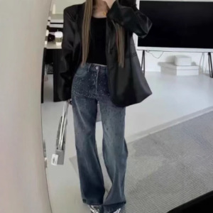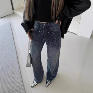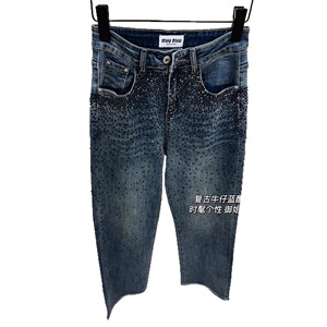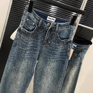Mシリーズの春夏新作ハイウエストスリムヘビーデューティベビーブレスホットダイヤモンドカジュアルストレートジーンズレディースパンツ