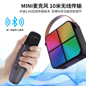 M12 Bluetooth ワイヤレススピーカーポータブルマイクワイヤレスマイクカラオケオーディオマイク雰囲気ライトセット付き