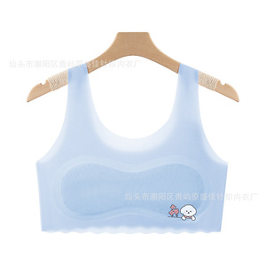 固定カップアイスシルクベスト女の子発育期ガールズブラジャー女子小学生6-12歳女の子薄型スタイル