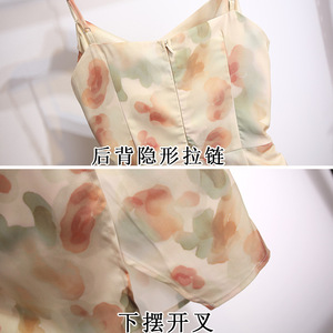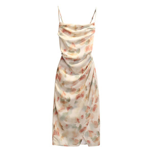 エレガントなレディースプリーツサスペンダーシフォン花柄ドレスレディースアウターホットスタイル2025夏新作ヒップカバーロングスカート