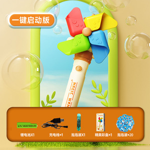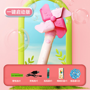 全自动电动泡泡机,旋转风车灯光泡泡棒,少女礼物玩具