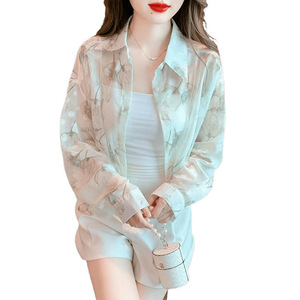 プリント日焼け止めシャツ女性の夏薄い 2025 新デザインニッチルーズショートカーディガントップジャケット