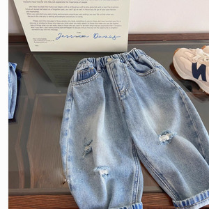 韓国版の新しいハンサムボーイズジーンズ子供の春のファッショナブルなズボンベビールーズカジュアルストレートパンツ子供服
