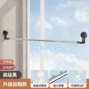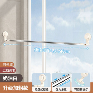 吸盤式ステンレス伸縮式物干しラック、家庭用屋内バルコニー窓、パンチングなしの布団乾燥用物干しロッド