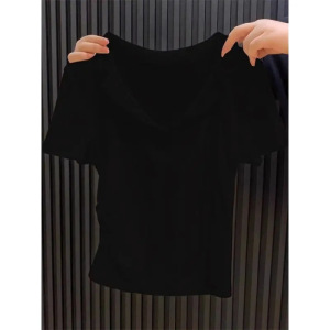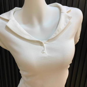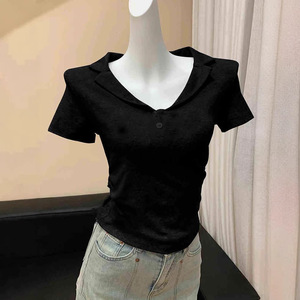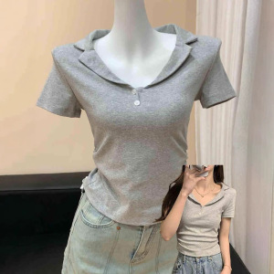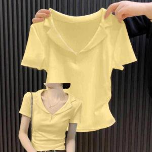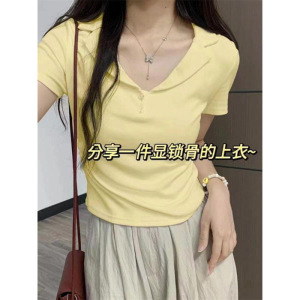 ドーパミンミルクイエローポロシャツ右肩半袖Tシャツ2025新作スリムウエストシックショートトップ女性用