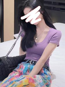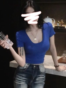春夏の新スタイルビッグUネック半袖Tシャツホットガールスタイル2025ファッションカジュアルスリムフィットトップ女性のボトリングシャツ