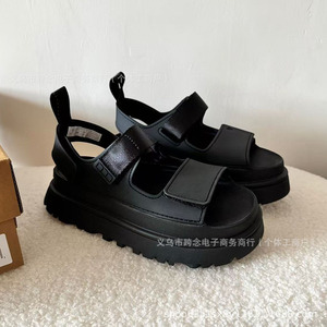2025 新しい夏スタイルの厚底ゴールドサンダル、ベルクロストラップ付き、女性用のファッショナブルな高さを高めるビーチサンダル