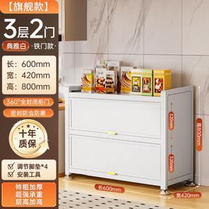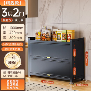 家庭用スチールキッチン収納キャビネット床置き多層収納ラック電子レンジキャビネットドア付き防塵収納キャビネット