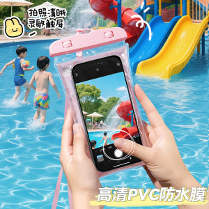 タッチスクリーン付き旅行用携帯電話防水バッグ、水泳、温泉、ラフティング、防水密封されたダイビングホルターネックエアバッグ携帯電話ケース