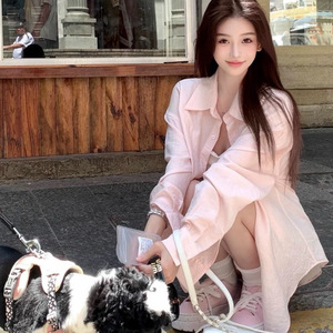 ピンクの長袖シャツ女性のための 2025 夏の新しい韓国スタイルの怠惰なスタイルのルーズで多用途の薄い日焼け防止ジャケット