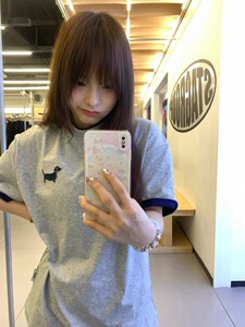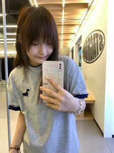 純綿アメリカンレトロコントラストカラー半袖Tシャツ子犬刺繍トレンディブランドカップル夏ルーズスリムトップ女性用