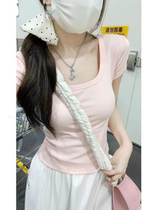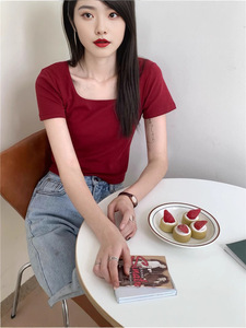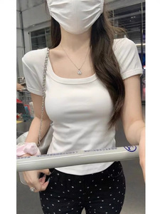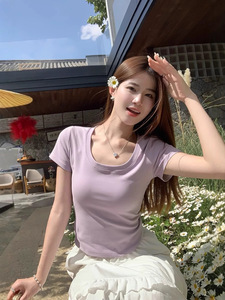 2025 気質、ファッショナブルな韓国風 U ネック夏スリムフィットシンプルで多用途な女性用ショートスリーブ T シャツ