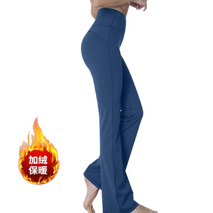 Lulu zgly 秋と冬のベルベットヨガマイクロフレアパンツハイウエストヒップリフティングアウトドアスポーツパンツ女性のダンスワイドレッグ