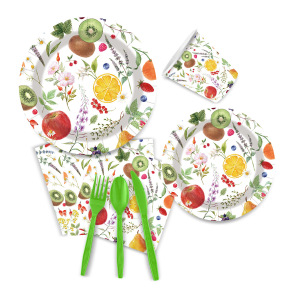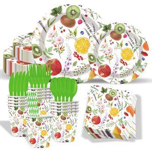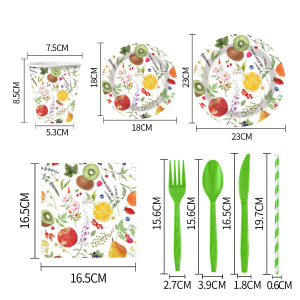 国境を越えたプリントフルーツテーマの誕生日パーティー使い捨て紙皿紙コップペーパータオルナイフフォークスプーンセットメーカー卸売