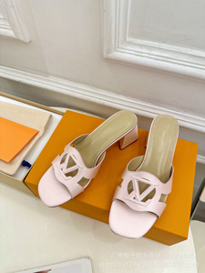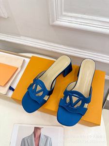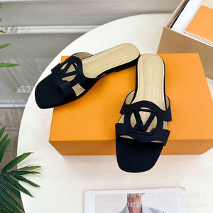 25SS 春夏新作スクエアヒール中空スリッパ女性用レトロシルク太いヒールカラフルなアウターウェアスクエアトゥフラットサンダル