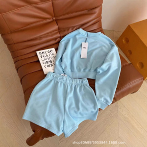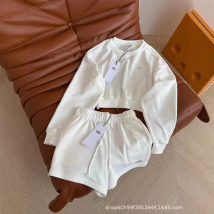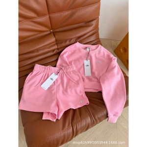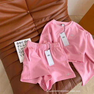 25 春夏新作ラウンドネックショートスウェットシャツ + ウエストゴムショーツドーパミンヨガスポーツスーツ女性用