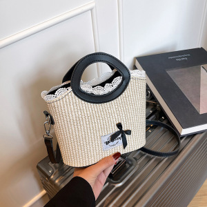 2025年早春新作 無地ハンドバッグ レディース トレンド カジュアル ショルダーバッグ ハンドバッグ 個性的なバッグ トレンディな草編み要素