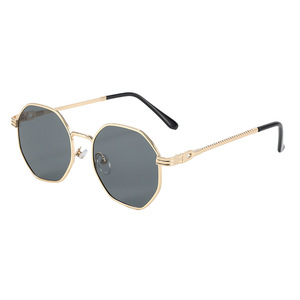 女性用のエレガントなメタルサングラス、新しいレトロなスクエアのハイエンドのメンズサングラス、茶色の痩身丸顔サングラス