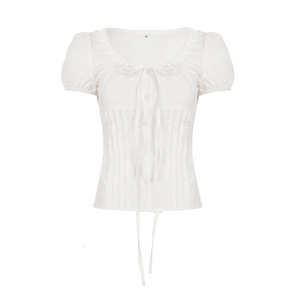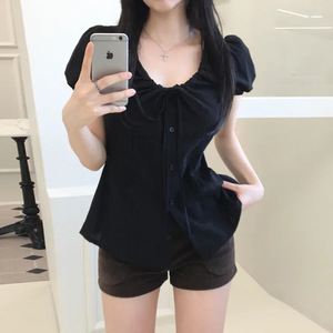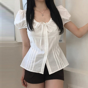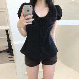 Pure Desire 韓国ガール年齢軽減蝶ネクタイスリムパフスリーブシャツ甘辛シンプル分割スリムトップ