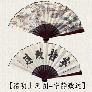 男性用中国風扇子、女性用古代風レトロドラゴン扇子、少年用古代衣装扇子、両面シルクと竹