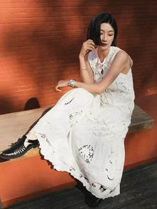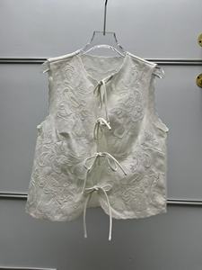 25年夏の新作ヘビーデューティー中空刺繍レースアップベストトップ+フラワーAライン刺繍スカートスーツ女性用