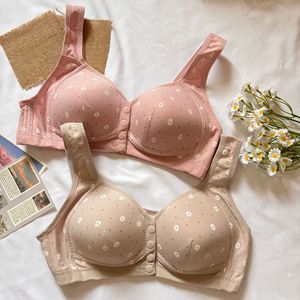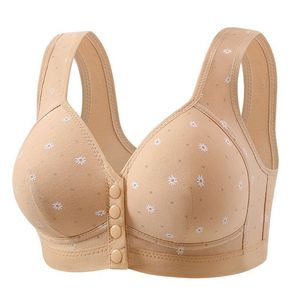 新しいプリントフロントボタン大きいサイズの女性の下着中高年ノンワイヤーベストスタイルプッシュアップ通気性薄型ブラジャー
