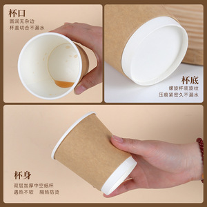 二層中空紙コップ、カスタムコーヒーカップ、牛革色の使い捨て紙コップ、シンプルな白いドリンクカップメーカー