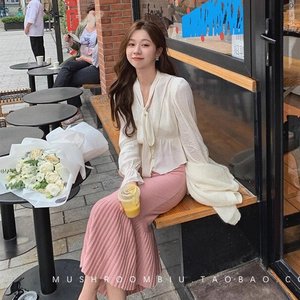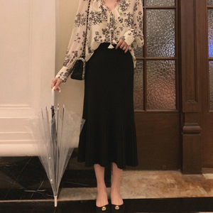 针织百褶半身裙女秋冬季新款小个子高腰显瘦中长款a字伞裙鱼尾裙